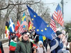 В акції International Unity March for Ukraine на підтримку України, яка перебуває під загрозою нового масштабного вторгнення Росії, взяло участь близько сотні людей, повідомляє Радіо Свобода.