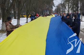 У Гончарівському розгорнули стометровий Державний Прапор України