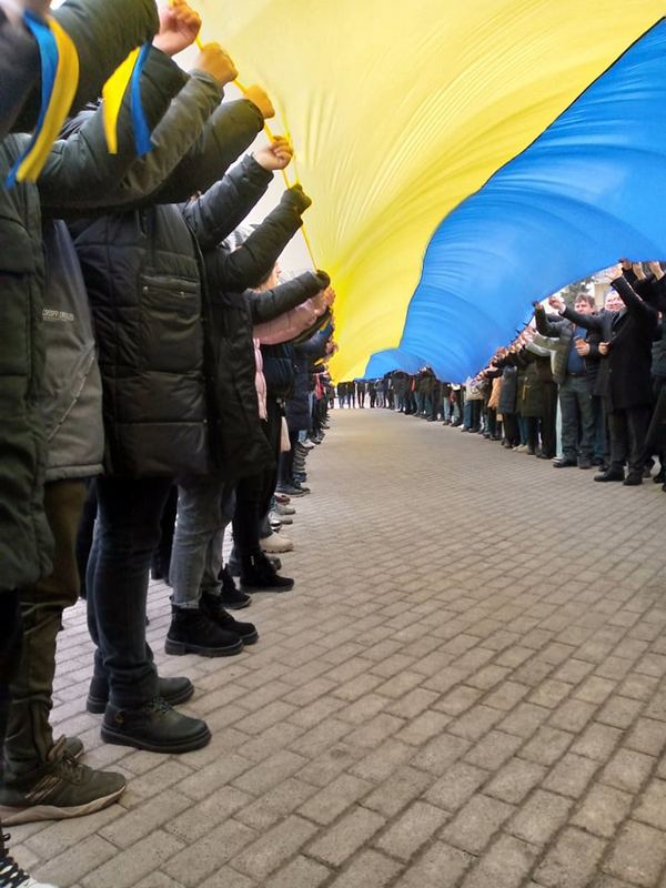 Щороку 16 лютого в Україні на державному рівні відзначатимуть нове державне свято — День єднання. Цього дня закликають підіймати національні прапори та прикріплювати до одягу синьо-жовті стрічки. Ніжинці також долучились до Дня єднання та розгорнули прапор на центральній площі міста.