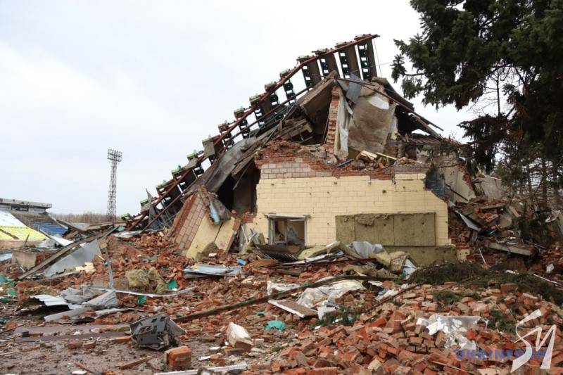 Російські війська бомбардували арену три ночі поспіль. На думку представника пресслужби футбольного клубу АПЛ «Десна» Дмитра Дорошка, стадіон реконструкції не підлягає.