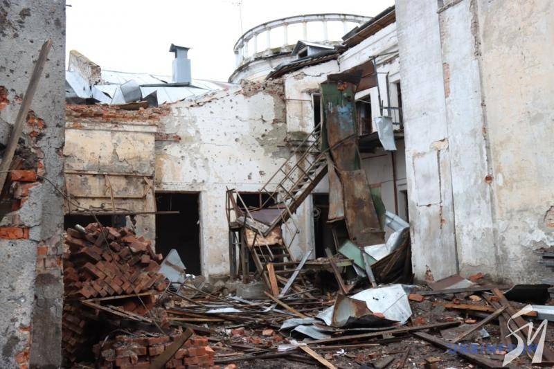 Російські війська сильно пошкодили споруду (частину – зруйнували) 27 лютого внаслідок авіаудару по Чернігівській міській раді.