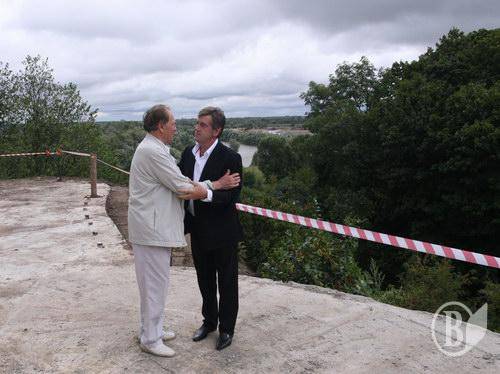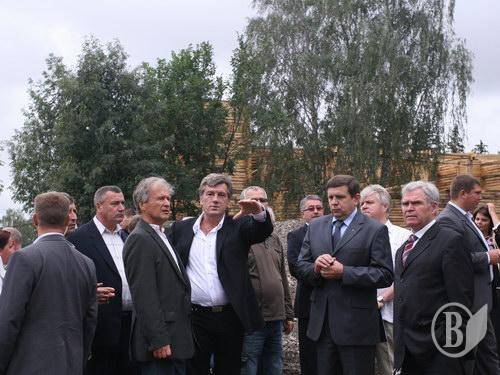 Виктор и Екатерина Ющенко осмотрели ход строительных работ на Цитадели Батуринской Крепости, укрепление склонов, строительство Казны и Дворца Ивана Мазепы.