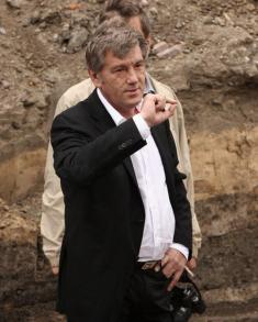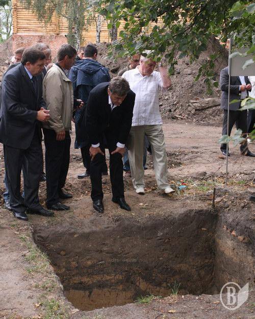 Президент вместе с женой ознакомился с ведением раскопок фундамента Собора Живоначальной Троицы – основного собора гетманской столицы Батурина.