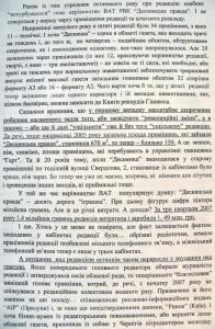 Насправді ж ситуація виглядає так: «первичка» має документи, підтверджують її співзасновництво, аналогічні документи є у всіх відповідних установах (зокрема, в облраді й облдержадміністрації, управлінні у справах преси та інформації). Так само є документи, які підтверджують, що при створенні ВАТ «РВК «Деснянська правда» газеті «Деснянська правда» також було виділено певну частину майна і приміщення видавничого комплексу. А за бухгалтерськими документами за три квартали 2007-го року (до призначення головним редактором Лариси Мілової) газета мала 90 тисяч гривень прибутків.