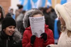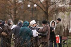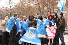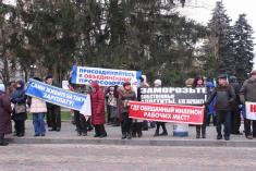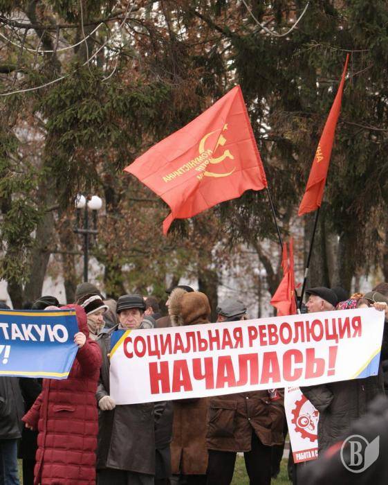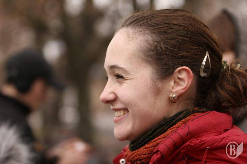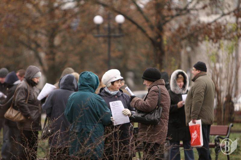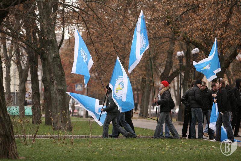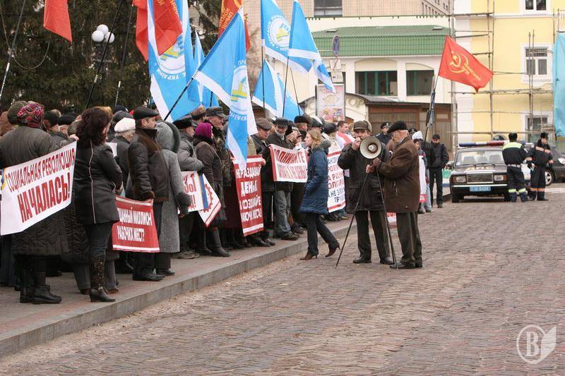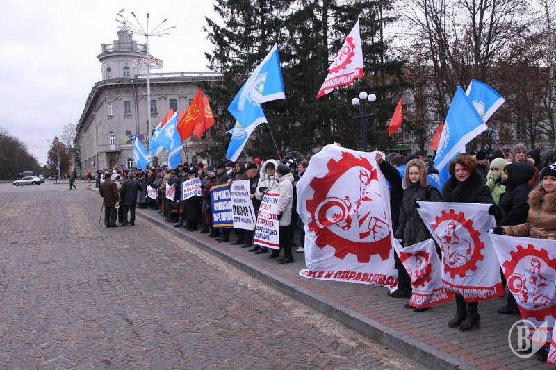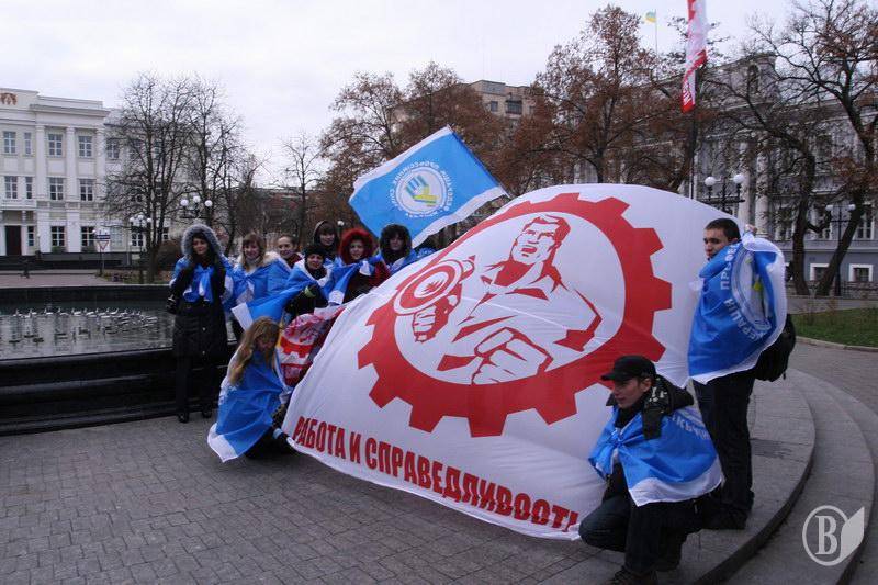 На центральную площадь вышли люди разного возраста. Ребята с флагами Федерации профсоюзов Украины. Девушки – с плакатами и хитрющими глазами. Люди старшего возраста – с разнообразными транспарантами.