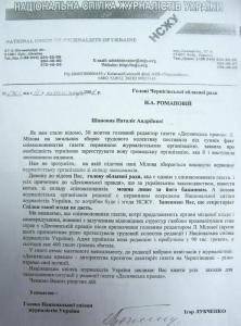 Національна спілка журналістів України закликае Вас вжити ycix заходів для залагодження ситуації у редакції газети «Деснянська правда».