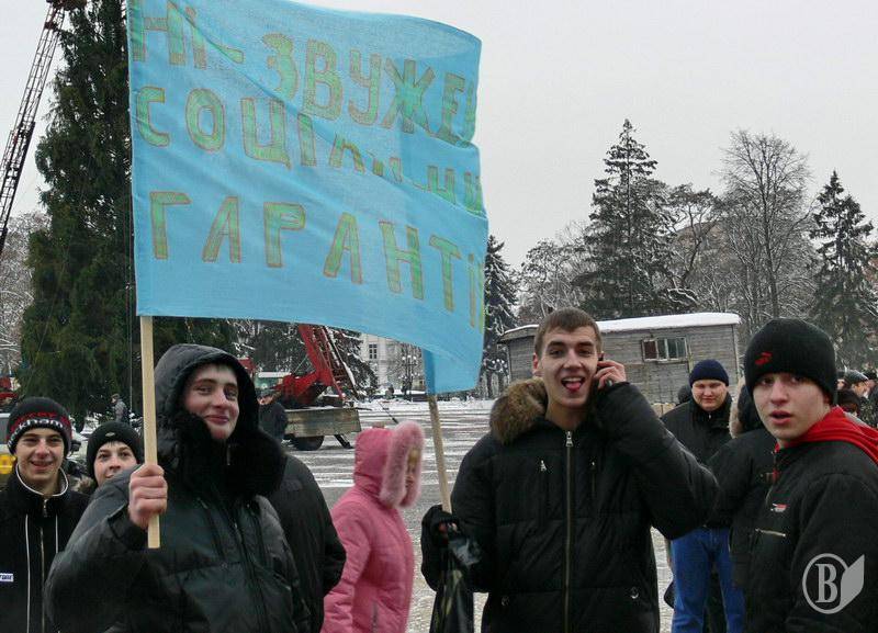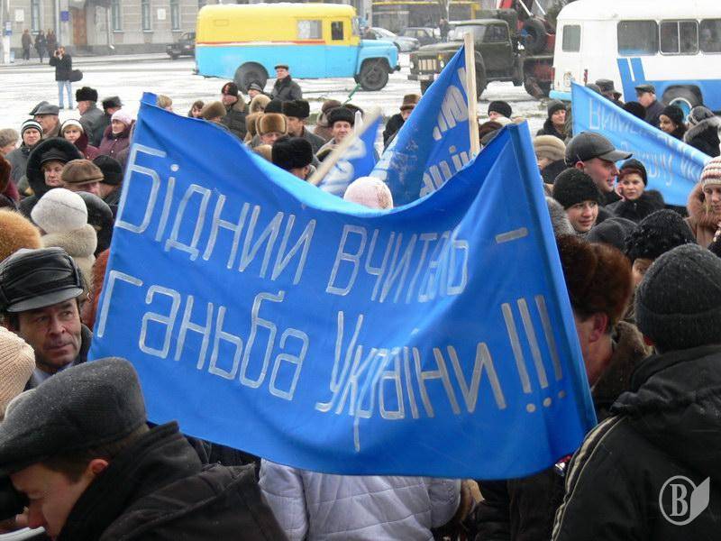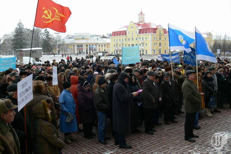 Владимир Струк в своём обращении к митингующим очертил в цифрах и фактах ту ситуацию, которая теперь сложилась в экономике области. По его словам, в настоящий момент под прикрытием кризиса непорядочные владельцы некоторых предприятий пытаются „сбросить" с себя социальные обязательства и возвести к минимуму расходы на оплату труда.