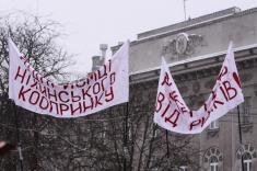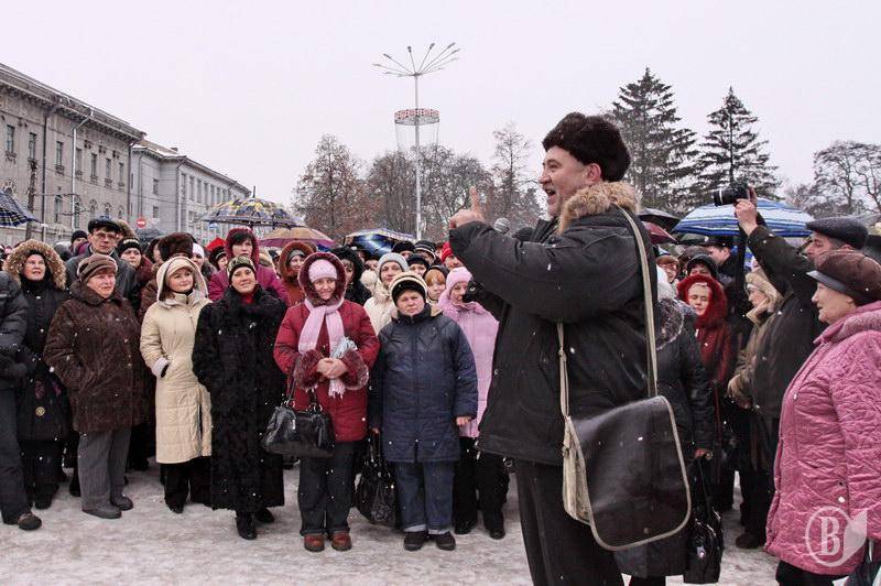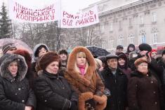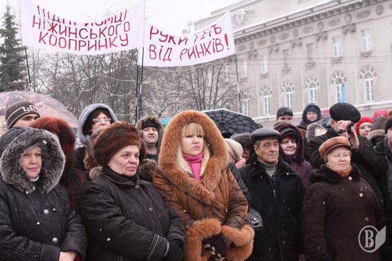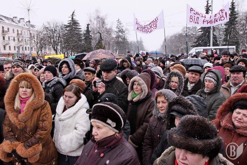 Сегодня состоялся митинг черниговских торговцев на центральной площади. Они протестуют против законопроекта „О местных налогах и сборах”, который рассматривается сегодня в Верховной Раде Украины.