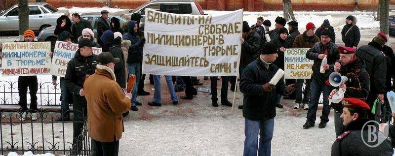 „Отпустите милиционеров на подписку о невыезде” – с таким лозунгом 26 февраля около Черниговской областной прокуратуры состоялась акция протеста семей работников органов внутренних дел.