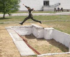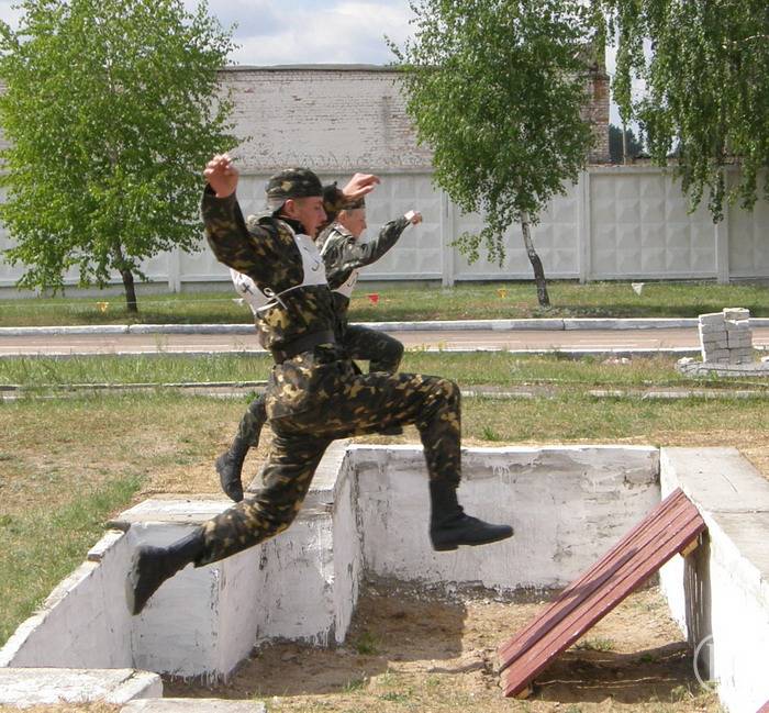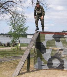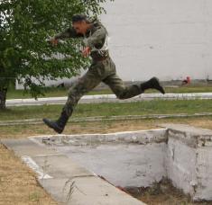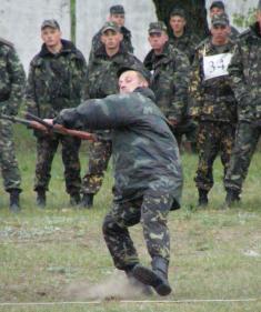Военное троеборье включало у себя стрельбу из автомата"Калашникова"на меткость, метание гранаты Ф-1 на дальность и точность, а также преодоление"знаменитой"общевойсковой полосы препятствий 600 м.