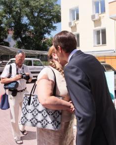 Однією з перших помітила нардепа Голова облради Наталія Романова, яка із радістю на обличчі та розпростертими обіймами кинулася йому на зустріч.
