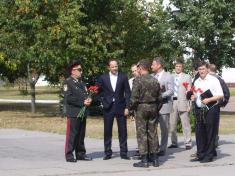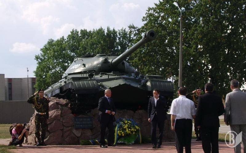 Следующим пунктом программы визита С.Л.Тигипко в Гочаровске было возложение цветов к памятнику воинам-танкистам. После чего гостю показали образцы военной техники, которая находится на вооружении Первой отдельной Гвардейской танковой бригады. Техника современная и отвечает лучшим мировым образцам. В частности, танк „последнего поколения” Т64БМ ”Булат”.