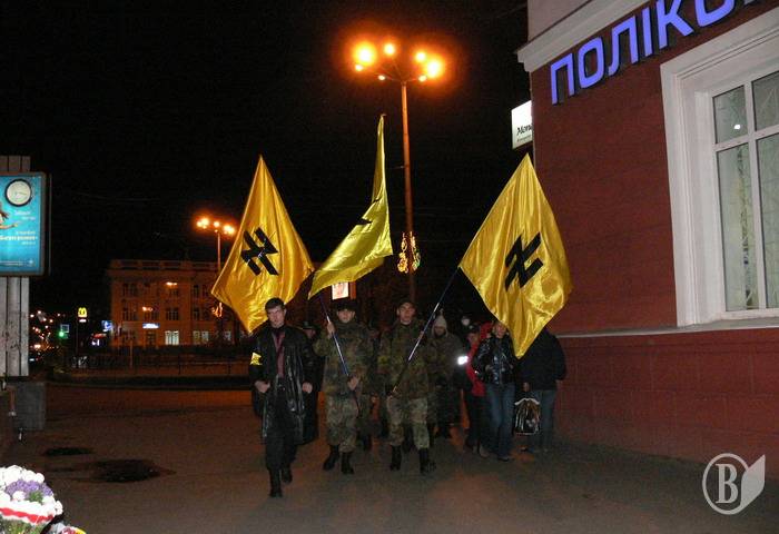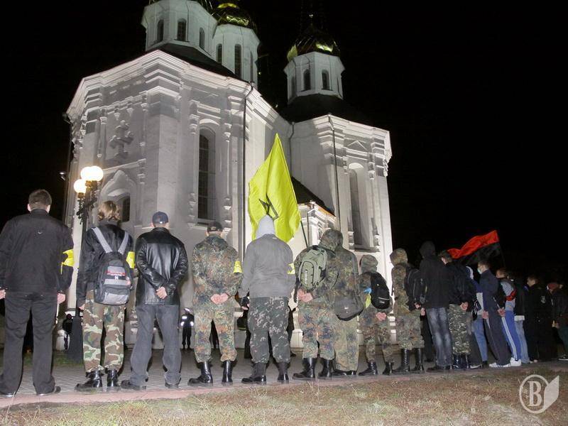 Увечері 14 жовтня по Чернігову від "Мегацентру" до Катерининської церкви пройшли організованим маршим місцеві українські націоналісти.