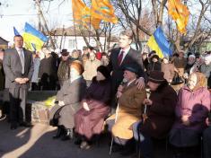 После литии и освящения камня Президент Украины вместе с местными обитателями, которые пережили Голодомор и репрессии, и членами официальной делегации поставил свечи памяти к камню.