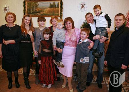 На вечеринке собралась целая батарея родных и близких: дети, зятья, невестки, сестра из Москвы и куча внуков.