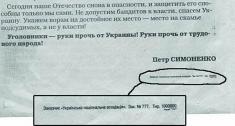 Позволим ему и всем остальным "пламенным" это напомнить, публикуя фотокопию не такого уж и давнего обращения Петра Николаевича к народу Украины. То есть, к нам с вами. Хотелось бы верить, что народ скажет все, что он думает о своем "защитнике".