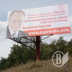 Белорусская кампания"Говори правду"не стала изобретать велосипед и воспользовалась идеей штаба экс-кандидата в президенты Беларуси Александра Милинкевича, разместив плакаты своего лидера Владимира Некляева на территории смежного государства.