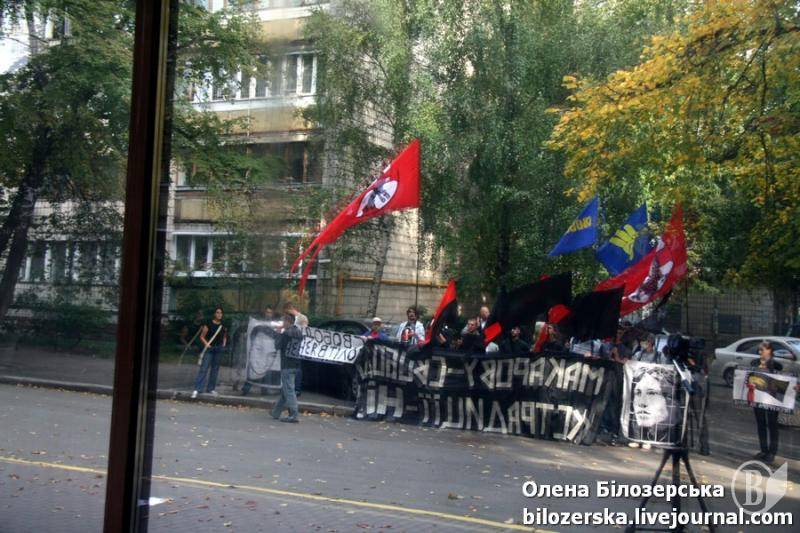 Они держали большой баннер «Макарову – свободу, экстрадиции нет!» и лозунги «Свободу политзаключенным, прокурора на мыло!» и другие. На лестнице ГПУ разбрасывали листовки на защиту Макарова и даже забросили стосик листовок внутрь.