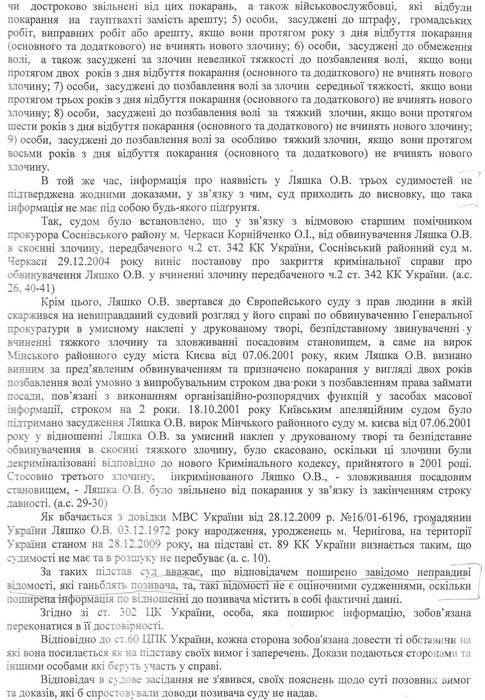 Тож надсилаю для ознайомлення і оприлюднення рішення Печерського районного суду від 19 серпня 2010 року за моїм позовом до Ющенка, де розставлено всі крапки над «і».