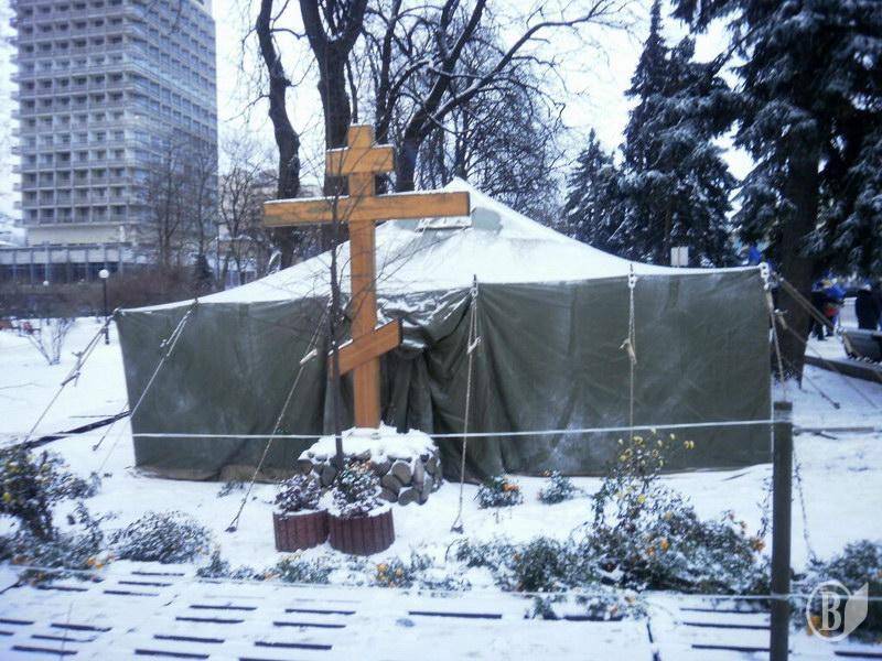 «Молитвенное круглосуточное стояние против…» під стінами Верховної Ради України продовжується, бо «йолку» під Верховною Радою влада не ставить.