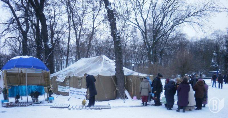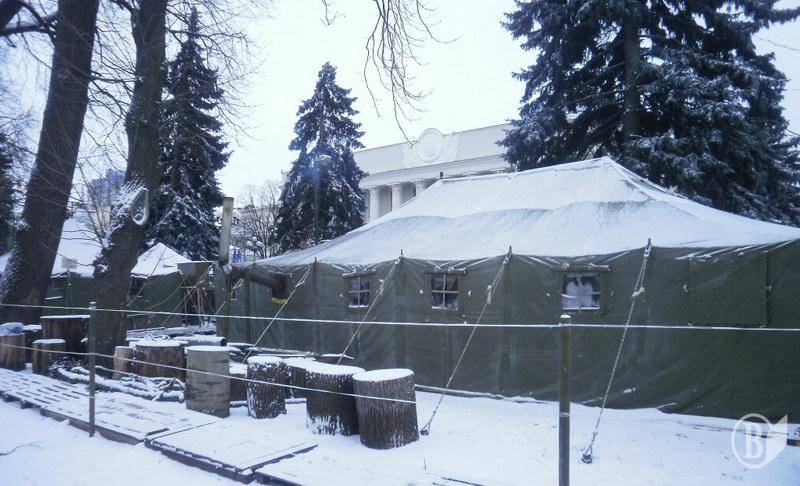 В той же час інший наметовий табір у парку під стінами Верховної ради України живе своїм життям вже декілька років. Безпосередньо у парковій зоні розмістилося декілька великих наметів, їдальня і, навіть, «голуб’ятня».