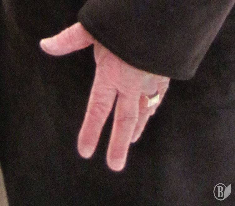 Але душителі не нападали на вождя-нардепа. Тому він, як Ілліч, привітався з протестувальниками. Мовляв, не бійтеся, я з вами, і золота печатка-кастет зі мною. Раптом що, усіх покладемо на лопатки!