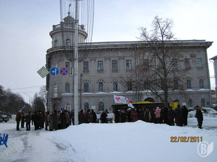 Опозиція тримала плакати перед адміністрацією, щоб видно було усім проїжджаючим у тролейбусах.