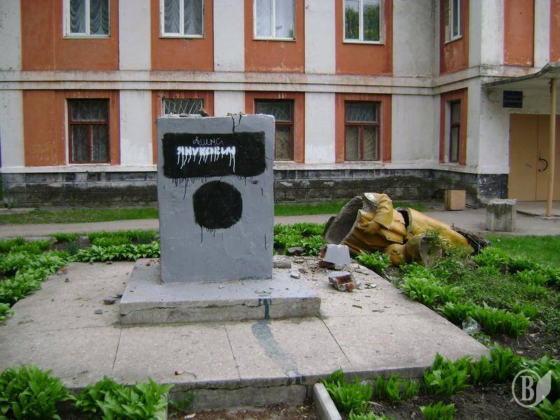 Пам'ятник Леніну знищили вночі у Чернігові в районі "Шерстянка". На порожньому п'єдесталі невідомі залишили напис "Янукович".