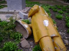 - У результаті негоди та сильного вітру, сьогодні вночі впав та розбився на частини черговий пам"ятник комуністичної доби кату Української Нації - Ульянову ("Лєніну"), який довго бовванів у районі "Шерстянка", - повідомила "Високому Валу" прес-служба Чернігівської обласної організації Конгресу Українських Націоналістів.