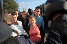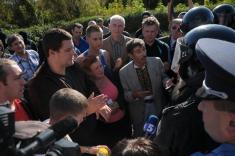 Після того, як група мешканців підійшла до райвідділку, а депутат Київської облради А. Іллєнко, користуючись своїми повноваженнями щодо першочергового прийому громадян, звернувся до міліції, так звані «правоохоронці» знову накинулися на людей. Попри беззаконня, вчинене міліцією, голові Київської «Свободи» все ж вдалося потрапити до приміщення місцевого райвідділку міліції. Зараз там тривають переговори з метою допустити до затриманих лікарів та адвокатів.