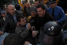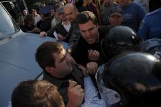 Всеукраїнське об`єднання «Свобода» заявляє, що затримані не чинили жодного спротиву співробітникам міліції, не мали й не застосовували димових шашок чи будь-яких інших подібних засобів, не тримали плакатів і не вигукували ксенофобських гасел. Розцінюємо як провокацію повідомлення, поширені деякими ЗМІ, про нібито порушення «Свободою» правопорядку.