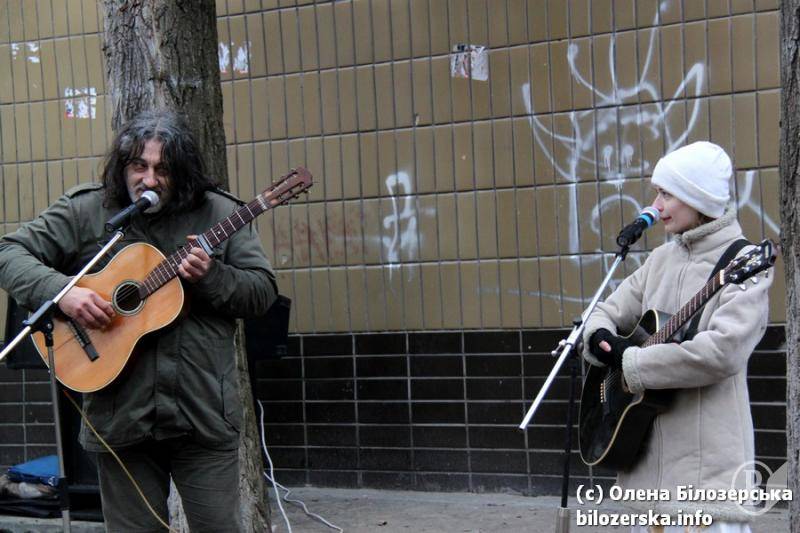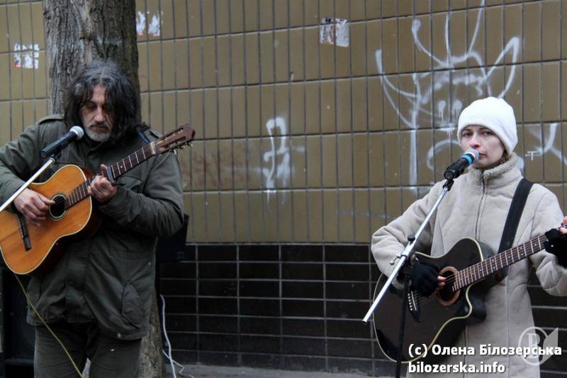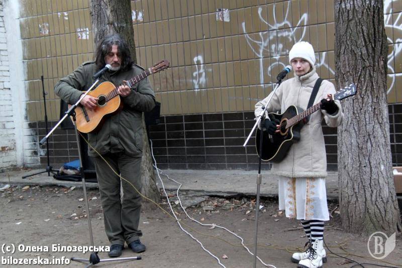 Потім Дмитро виконав відому пісню про відьму, а Леся підігравала йому на сопілці. Дуже поважаю їхній гурт, бо знаю, що вони співають на таких акціях повністю безкоштовно, не дивлячись навіть, скільки людей зібралося.
