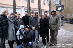 Почалося усе з молитви. Людей було небагато, адже більшість роз’їхалась на свята. Зате майже всі знайомі обличчя були на місці.Леся Рой і Дмитро Добрий-Вечір, учасники гурту “Вій”, співали неймовірно гарні колядки – послухаєте на відео. (Озвучка, щоправда, цього разу трошки кульгала). Власне, колядки співала Леся, а Дмитро акомпанував їй на гітарі. Леся, як з’ясувалося, співає на цьому місці для політв’язнів вже вчетверте. Під час першого і другого разу я була присутня. Тодішніх політв’язнів – Ганну Сінькову і Сергія Костакова – вже давно звільнено на підписку, але політв’язні все одно не закінчуються :(