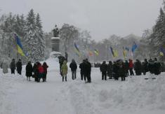 Чернігівці 22 січня святкували День Соборності. Учасники дійства зібралися біля пам'ятника Хмельницькому.