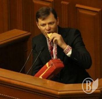 Причому, попередньо вийшовши на трибуну Верховної Ради. І на доказ своїх слів смачно закусив шматочком з принесених запасів.