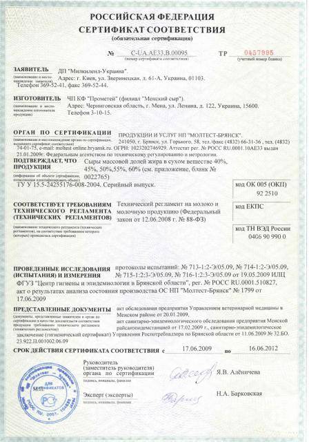 Росіяни давали дозвіл «Менському сиру» до літа 2012.ФОТО