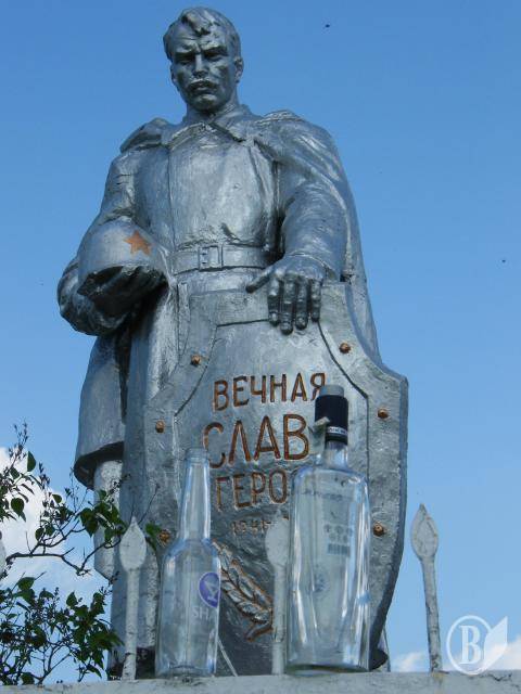 Під пам’ятником із написом «Вечная слава героям», що у Політрудні на Городнянщині, помічаю кілька «снарядів». Ні, не звичайних металевих. Іншого виду – скляних. Їх «калібр» – півлітра. Вони не вибухають, але повільно «очищають» голови від розуму, а території – від населення.