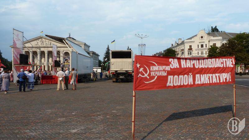 А от на центральній площі міста народ чув те ж саме, проте вже російською мовою. Певно, електорат КПУ - це товариші, яких політкоректно треба називати людьми з обмеженими лінгвістичними здатностями?