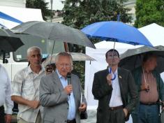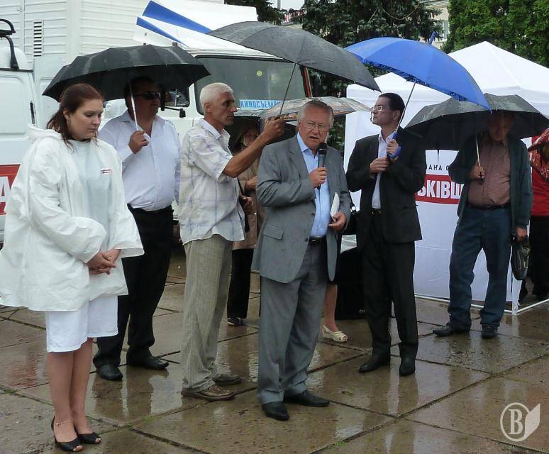 Зістріч перед сходами міськвиконкому, який у народі охрестили "зубом мудрості", Борис Тарасюк розпочав із заклику голосувати за опозицію й кандидата від ВО "Свобода" по мажоритарному округу Валерія Боровика і додав, що той не зміг під'їхати.