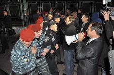 Присутніх на місці події депутатів і журналістів силовики у масках обприскали сльозогінним газом.