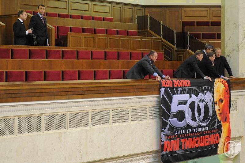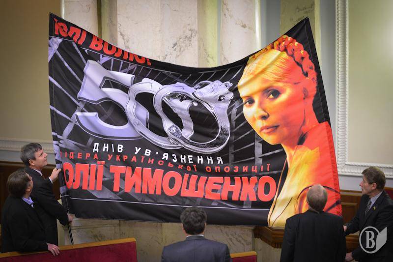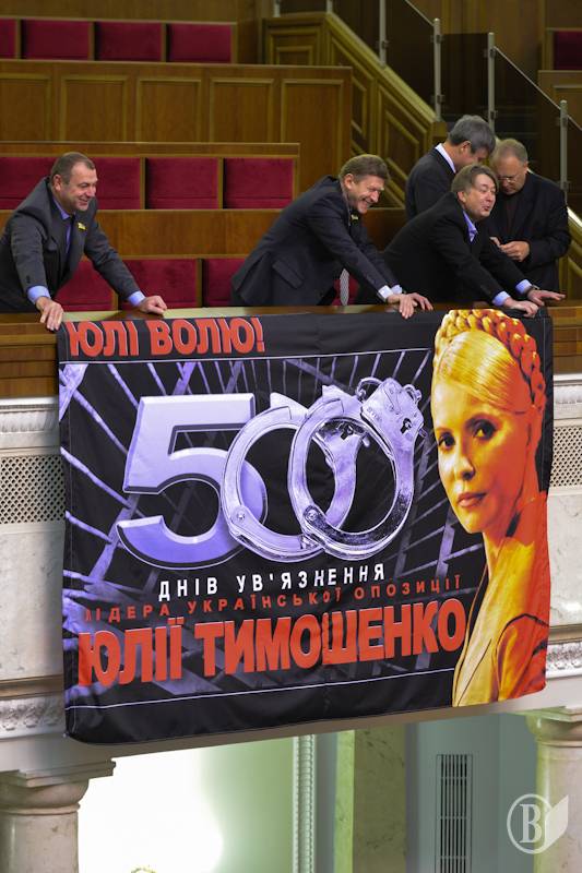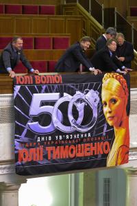 Вчора опозиція намагалася знову привернути увагу України і світу до дати - 500 днів перебування екс-прем'єра Юлії Тимошенко у в’язниці. Депутати принесла в Раду новий плакат про Юлю: "500 днів у в'язниці".