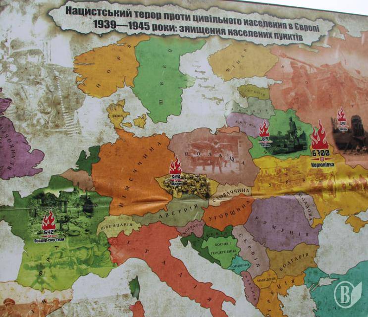 У символами таких втрат у чехів є — Лідице, французів — Орадур, білорусів — Хатинь, росіян — Хацунь.