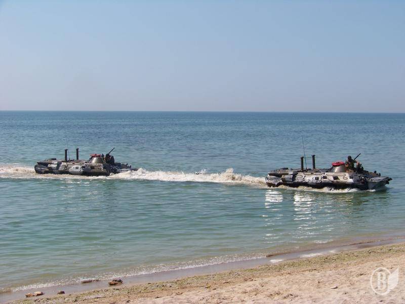 Представникам мас-меді було представлено також підготовку бронетранспортерів роти морської піхоти (кількістю дванадцять штук) до виходу на плав, підготовка на берегу до можливої евакуації шляхом буксировки підбитої машини на плаву та на суходолі, а також продемонстровано буксирування одного БТРа іншим на воді, при виході з води на берег ( евакуація підбитої машини), та по берегу евакуація БТР у непрострілювану ділянку місцевості.