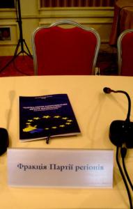 Сам круглий стіл у столиці навіть візуально був розділений на дві частини: справа сиділи спікери, які представляли опозицію, ліва частина була порожня, і перед порожніми ж стільцями сиротливо стояли таблички. При тому, найвищого «рангу»: запрошення на захід отримали всі очільники держави — президент, голова парламенту, прем`єр уряду, всі фракції Ради, тобто і ті, що входять до правлячої коаліції,— регіонали і комуністи, їх таблички теж стояли на лівому фланзі.