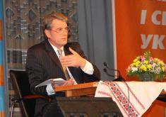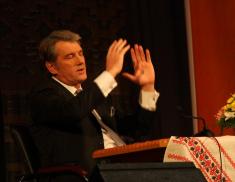 На знімках: Віктор Ющенко 3 години говорив до чиновників і журналістів розлогими монологами 11 січня 2010 року в Чернігівському театрі імені Тараса Шевченка.