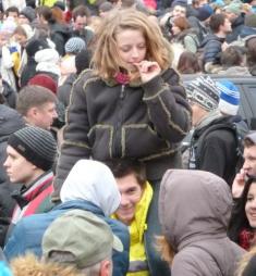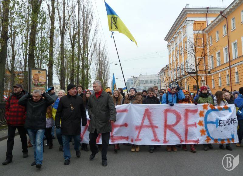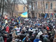Территория около красного корпуса университета была заполнена людьми до краев, колоннам из столичного проспекта Шевченко и улицы Владимирской не было видно конца. Всюду царила эйфория возвышенного духа и единения.