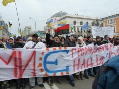 Поэтому колонны сразу решили идти на Крещатик невзирая на запретительное решение суда, который "отменил" все акции в центре столицы.