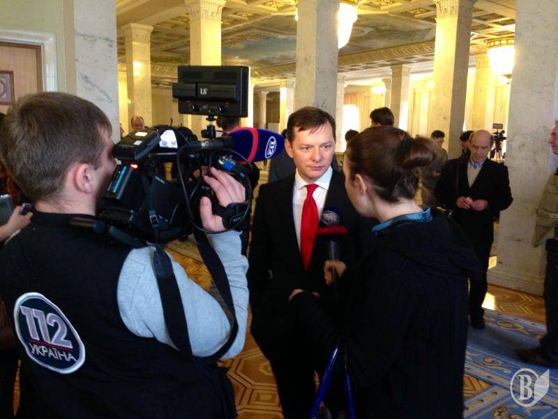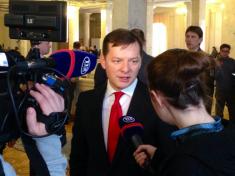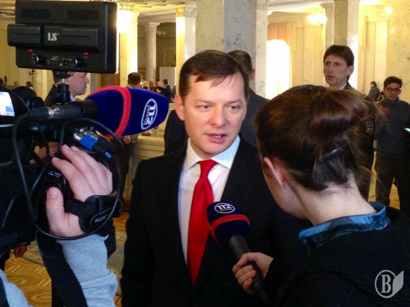После этого в сессионном зале около трибуны немного натолкали Олега Ляшко.