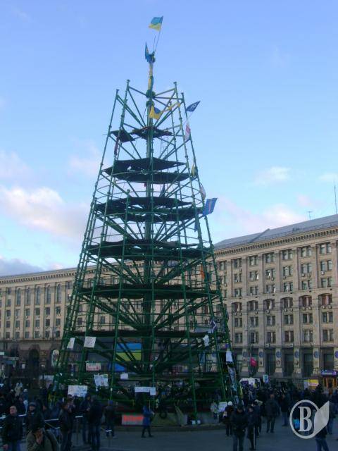 Участники Народного вече, которые собирались в воскресенье утром около памятника Шевченко, прошли центром столицы к Площади Независимости. Возглавляют колонну лидеры оппозиции Арсений Яценюк, Виталий Кличко, Олег Тягнибок. Люди рынулись убирать металлические ограждения, которые установили на Площади после кровавого разгона митинга. Милиция разбегается в разные стороны. Полусмонтированную елку, устанровка которой вроде бы стала поводом к ночному побоищу на площади, люди не трогают, но установили на ней флаги Украины и Евросоюза, а к елке возложили жалобные венки.