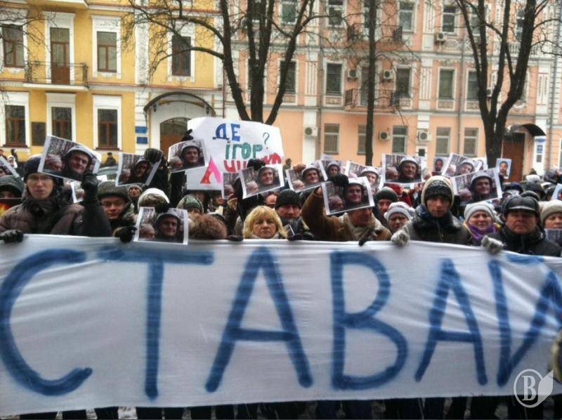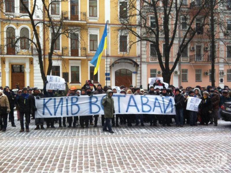 Прямо зараз кілька тисяч людей під управлінням київської міліції (вул. Володимирська, 15) вимагають знайти і повернути активістів, мирних протестантів Ігоря Луценка та Юрія Вербицького, брутально викрадених цієї ночі з Жовтневої лікарні.